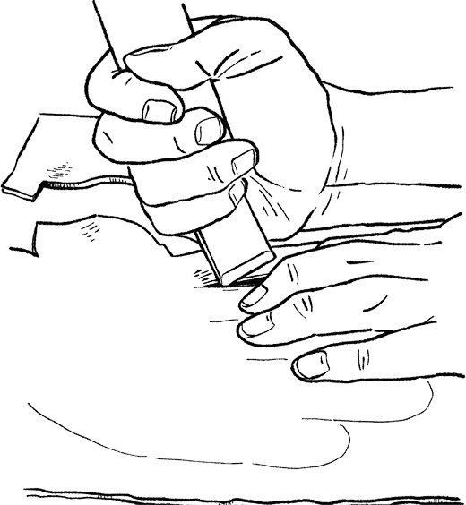 型紙に忠実に革を裁断し、